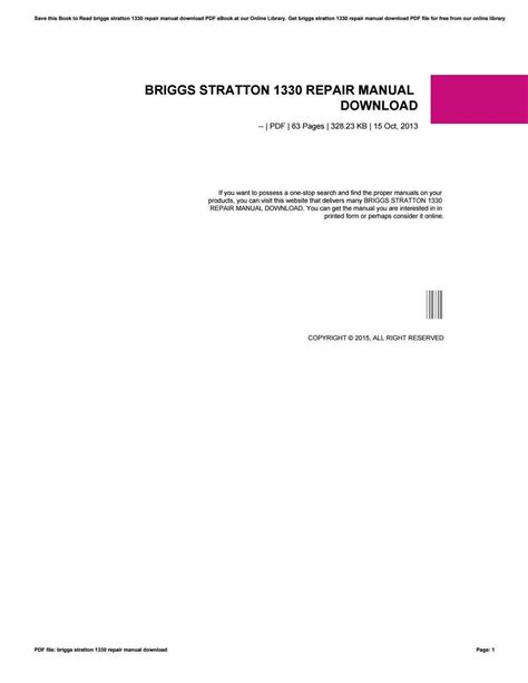Everyone knows that reading Briggs And Stratton 1330 Repair Manual is beneficial, because we can get too much info online from your reading materials. Technology has developed, and reading Briggs And Stratton 1330 Repair Manual books may be far more convenient and easier. We can easily read books on the mobile, tablets and Kindle, etc. Hence, there are many books coming into PDF format.